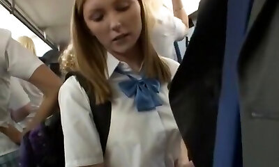 Thirsty Japanese school girl banged on a crowded bus