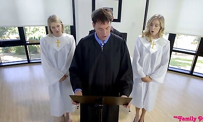 Sinful babe Haley Reed goes super-naughty on a hard pillar in front of priest