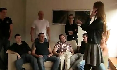 распутная шатенка с довольно симпатичной mammories получает mouthfucked много людишек