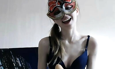 супер-горячая неопытная скачет на экстремально длинном поддельном пенисе